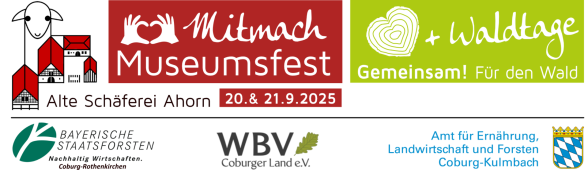 Samstag und Sonntag 20.09.2025 - 21.09.2025 Gemeinsam! FÜR DEN WALD Mitmach-Museumsfest & Waldtag mit Beteiligung der WBV Coburger Land e. V., in der Alten Schäferei, Ahorn